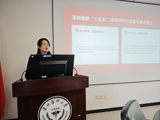 最后,张婷婷同志以《“十五五”时期主要目标和重大任务》为题讲授了专题党课,带领党员学习领悟“十五五”规划的时代背景与重大意义,聚焦“十五五”时期主要发展目标指标,结合学校高质量发展建设目标,要求支部党员要胸怀大局、立足岗位,将个人发展融入国家和学校的发展大局中,以正确的政绩观引领工作实践。